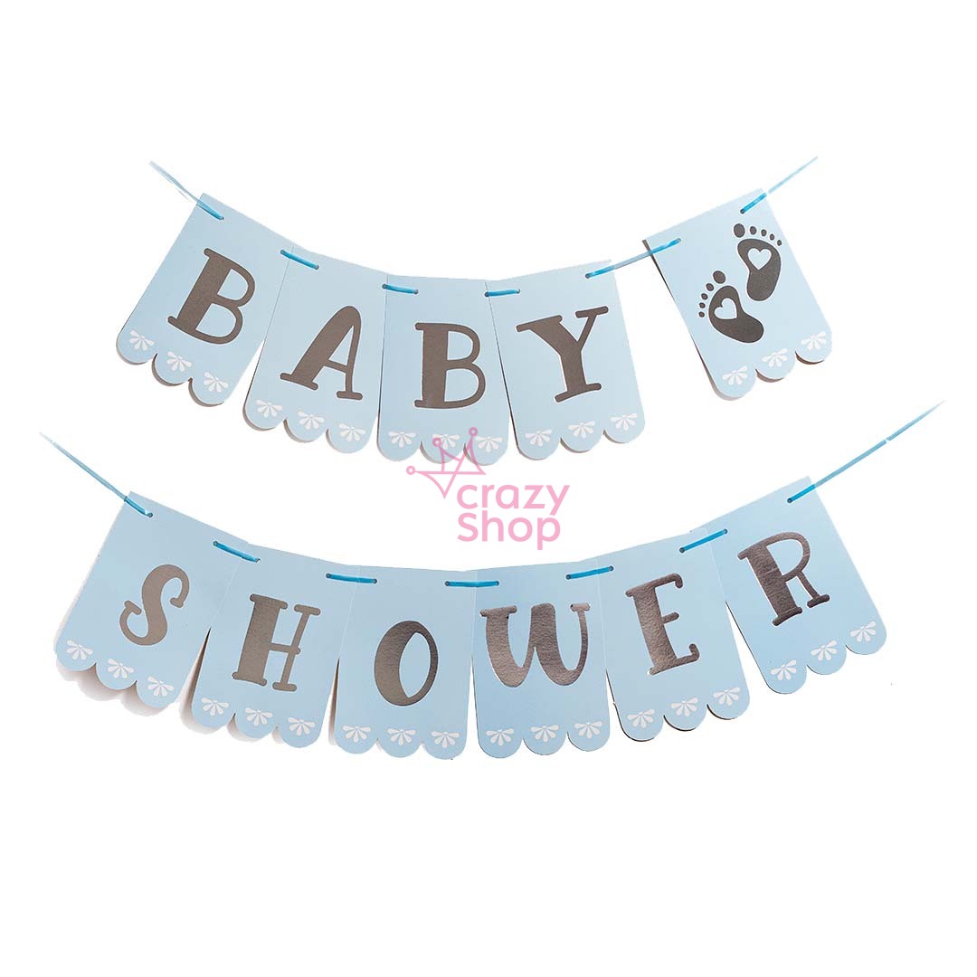 BANDERIN BABY SHOWER CELESTE PASTEL CON LETRAS DORADAS