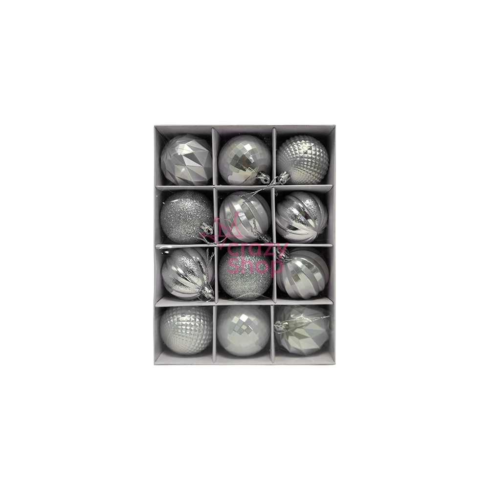 PACK DE 12 BOLAS DE NAVIDAD PLATEADAS
