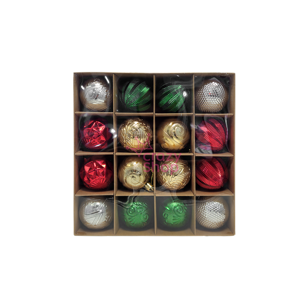 PACK DE 16 BOLAS DE NAVIDAD SURTIDAS ROJAS, VERDES, DORADAS Y PLATEADAS