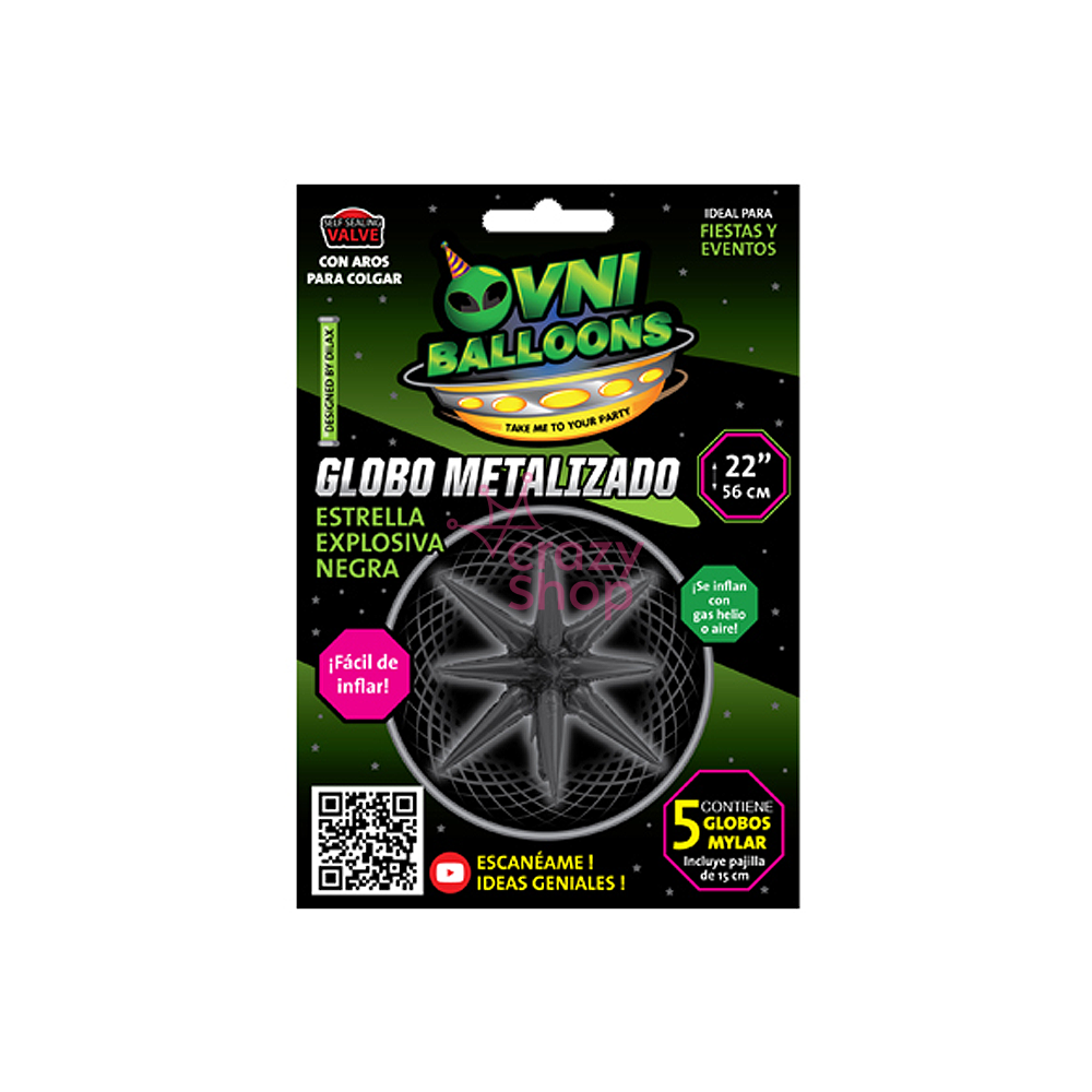 SET X 5 GLOBOS 22" ESTRELLA EXPLOSIVA NEGRA