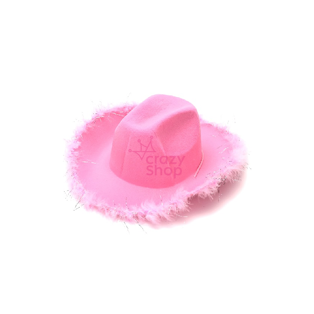 GORRO COWBOY ROSA CON PLUMAS