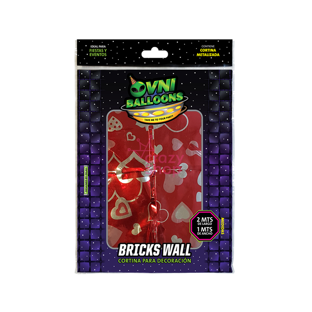 CORTINA COLGANTE BRICKS WALL CORAZONES ROJOS OVNI