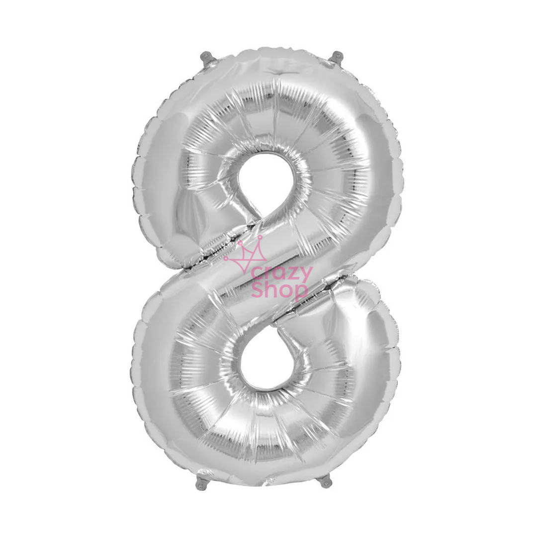 GLOBO MAYLER 100CM (40") NUMERO 8 PLATA