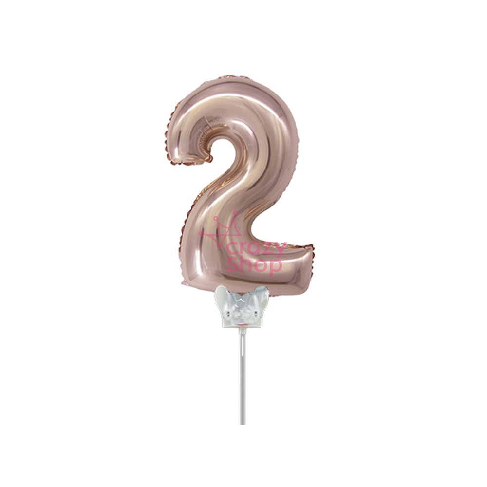 GLOBO METALIZADO ROSA GOLD 14" NUMERO 2 CON PALITO