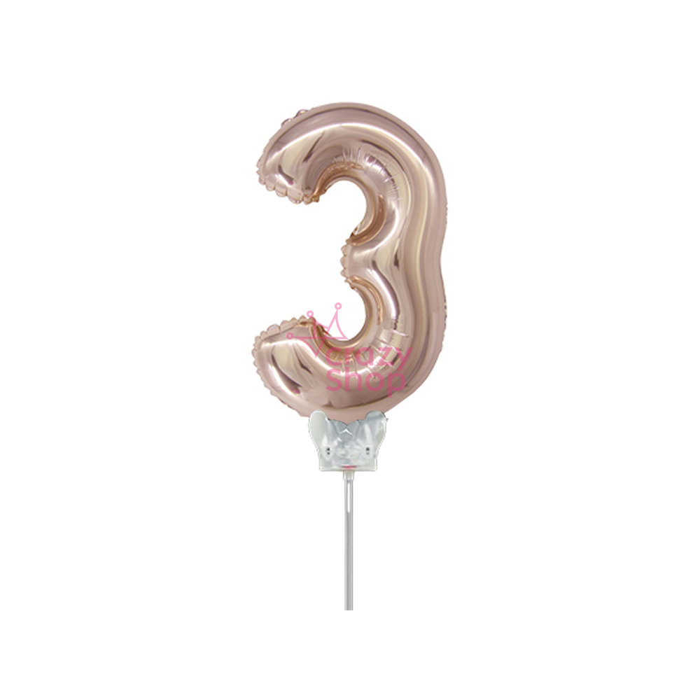GLOBO METALIZADO ROSA GOLD 14" NUMERO 3 CON PALITO