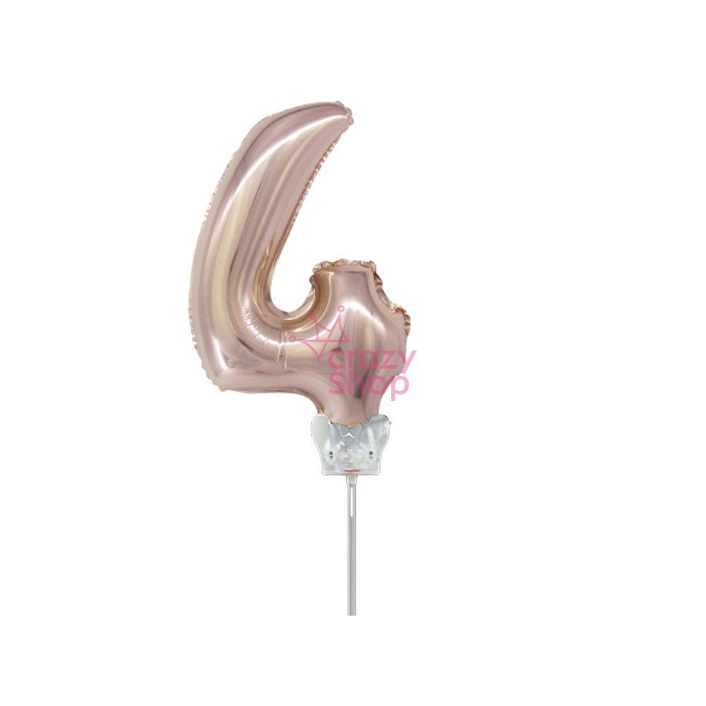 GLOBO METALIZADO ROSA GOLD 14" NUMERO 4 CON PALITO