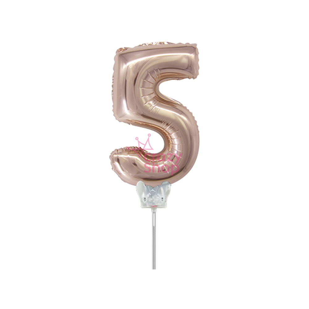GLOBO METALIZADO ROSA GOLD 14" NUMERO 5 CON PALITO