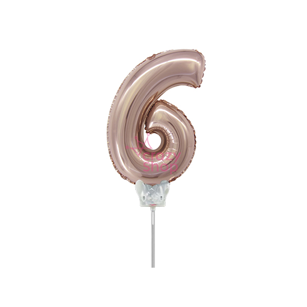 GLOBO METALIZADO ROSA GOLD 14" NUMERO 6 CON PALITO