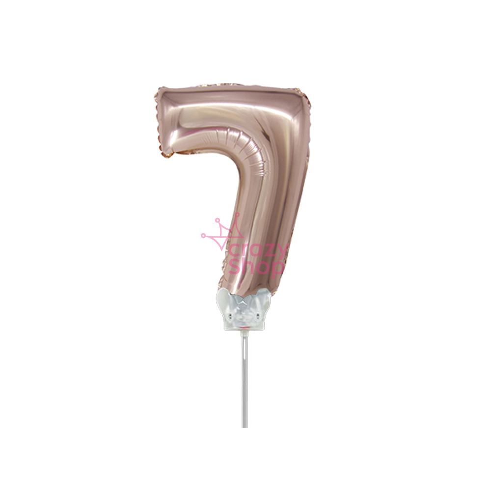 GLOBO METALIZADO ROSA GOLD 14" NUMERO 7 CON PALITO