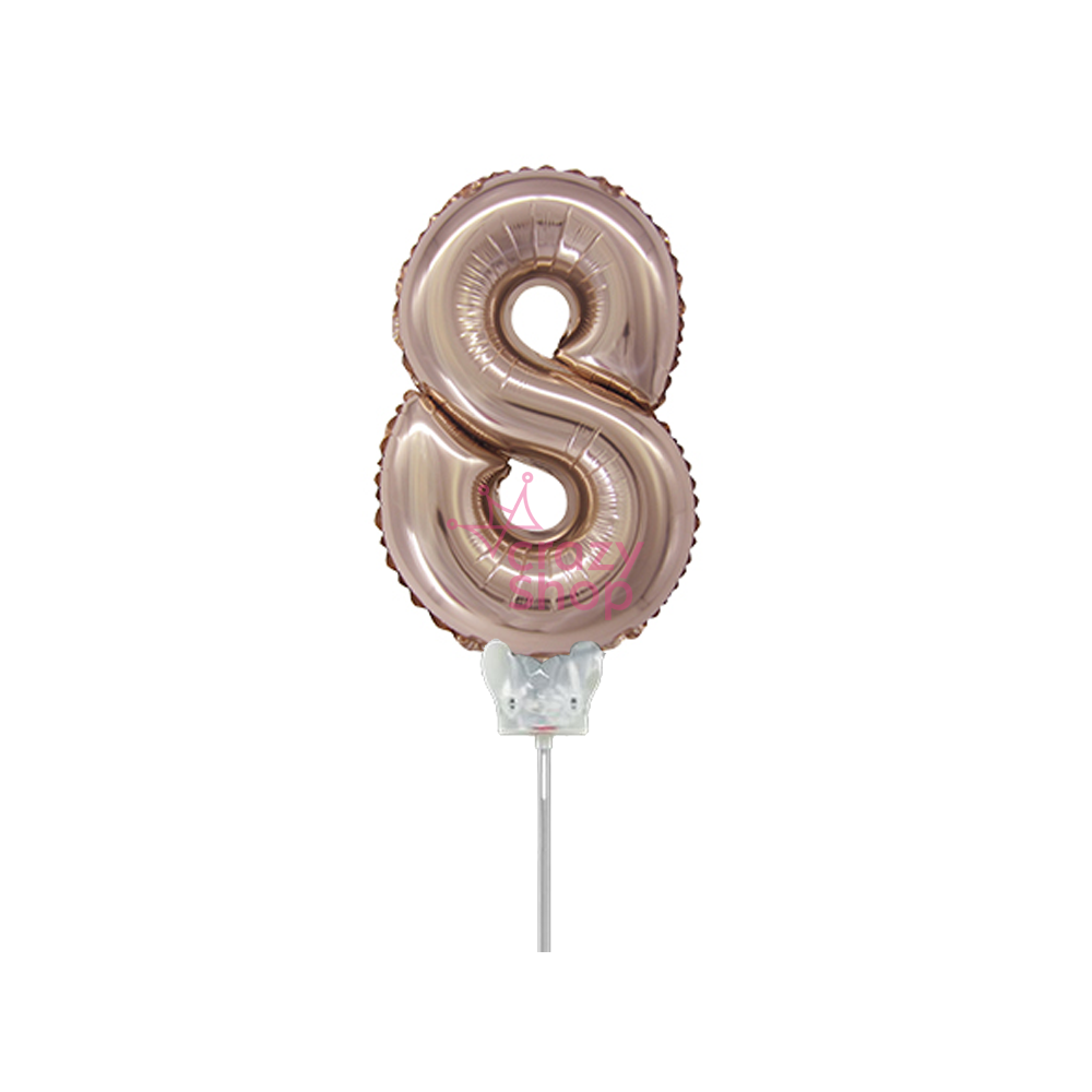 GLOBO METALIZADO ROSA GOLD 14" NUMERO 8 CON PALITO