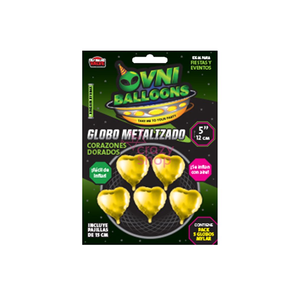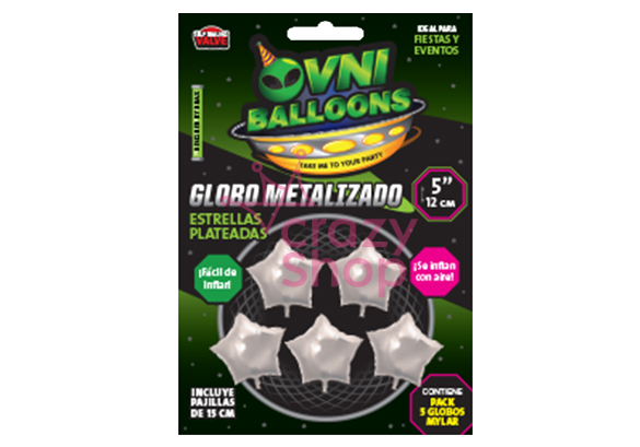 Pack de 5 globos metalizados con forma de estrella en color dorado, tamaño mini de 12 cm. Ideal para decorar fiestas, cumpleaños o mesas dulces. Incluye palitos de 15 cm para inflar y sostener fácilmente. Se inflan con aire, no requiere helio.